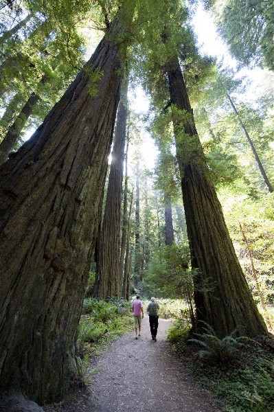 Hugging California's northwestern edge, a spectacular network of parks protecting nearly half of the world’s coast redwoods, the world’s tallest living things, which grow over 350 feet/107 meters high. But there’s more than giant trees in this lush land. Here, majestic (and big) Roosevelt elk graze in grassy prairies. Wild beaches are dotted with weathered driftwood, not a footprint in sight, and rivers tumble into the sea. Three state parks—Jedediah Smith, Del Norte (pronounced “del nort”) Coast, and Prairie Creek Redwoods State Park—work in consort with Redwood National Park to protect the region, and all offer a remarkable number of ways to explore, learn, and discover. Remember that all that green is here for a reason: annual rainfall, which normally falls from October through April, averages 60 to 80 inches/152 to 203 centimeters, so bring raingear and sturdy, nonslip shoes.